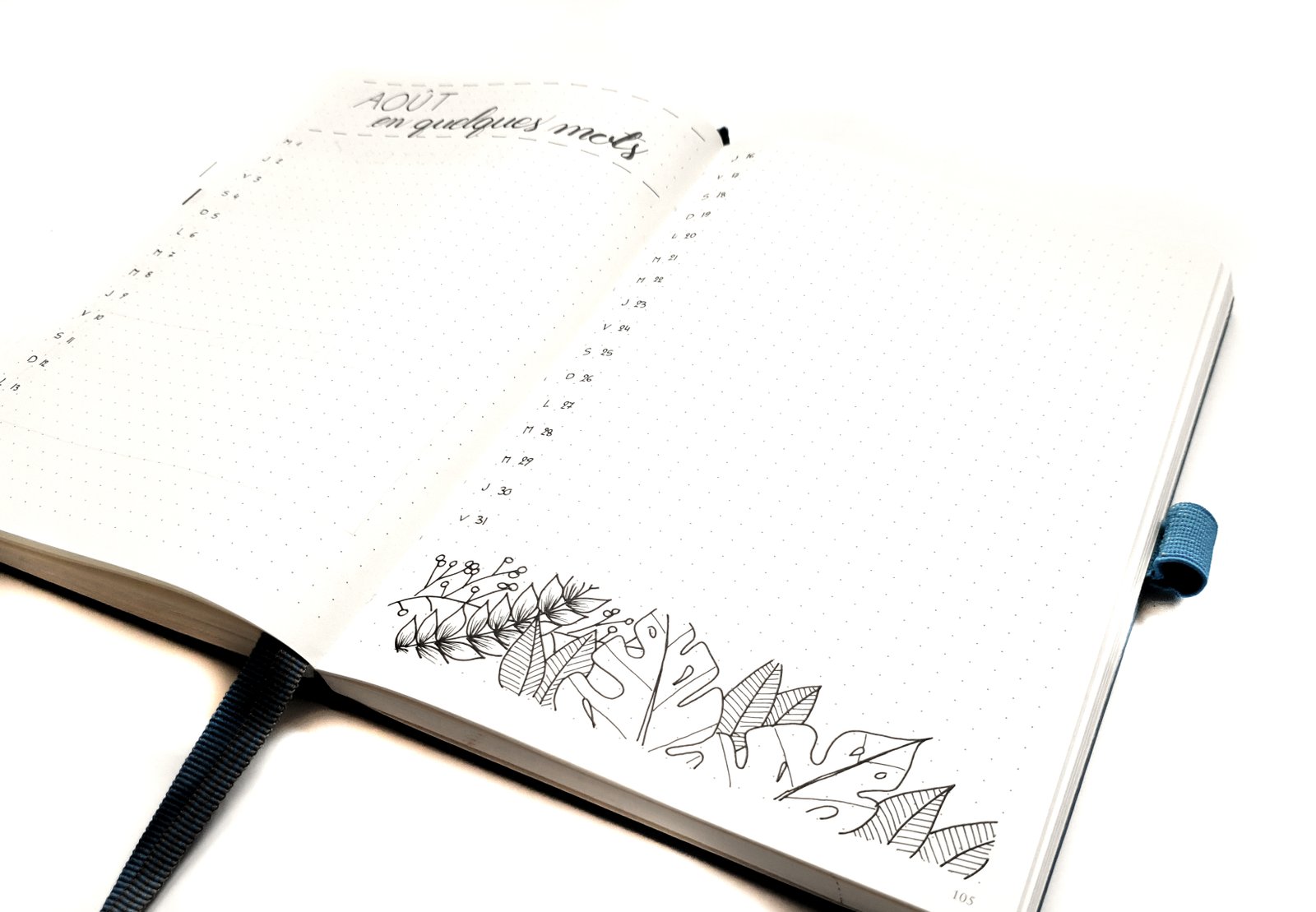 Pour ce mois d’août, j’ai décidé d’ajouter à nouveau une page de garde. C’est une habitude que j’avais prise dans mon précédent carnet, et que j’avais abandonnée dans celui-ci. J’aime énormément le rendu de cette page en particulier !